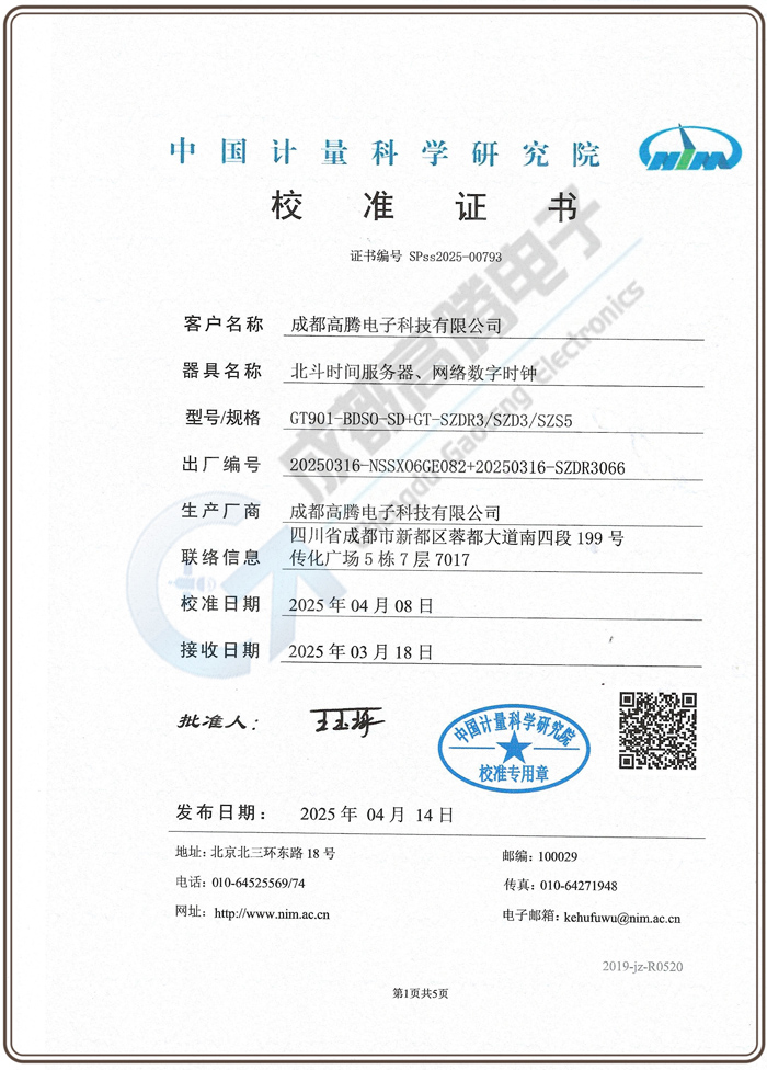 計量科學(xué)院設(shè)備校準(zhǔn)證書